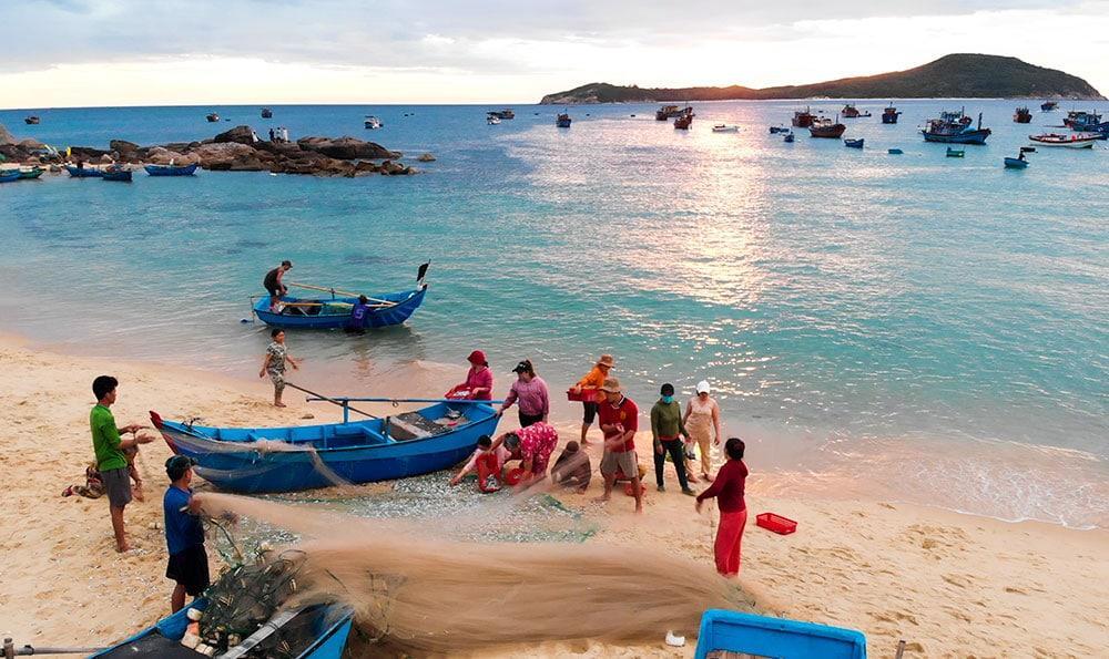 Đây cũng là thời điểm ngư dân nhộn nhịp ra khơi, bạn có thể dễ dàng bắt gặp cảnh tàu cá cập bến, tấp nập người mua bán hải sản tươi sống ngay tại bờ biển, đây chắc chắn là một trải nghiệm đậm chất làng chài miền Trung.