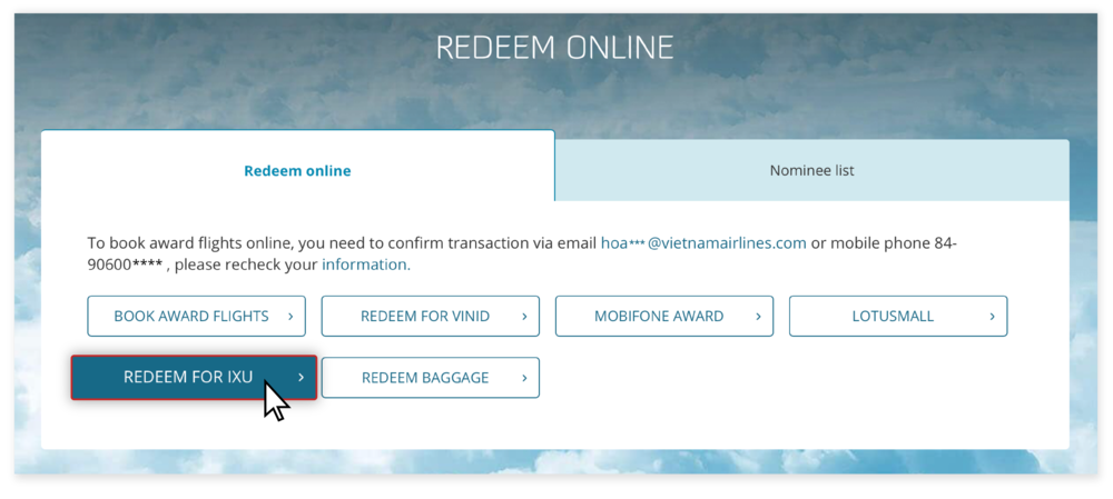 步骤4:请填写完整的信息以连结TCBS帐户。于连结成功后,选择"兑换iXu积分"并填写需要兑换的里程数。
