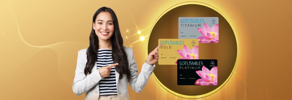 Hạng thẻ hội viên Bông Sen Vàng càng cao, quyền lợi khi bay cùng Vietnam Airlines càng hấp dẫn, tham khảo thêm các đặc quyền và ưu đãi tại Quyền lợi hạng thẻ.