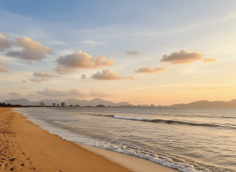 Mui Ne Beach captivates visitors with a stunning contrast of golden dunes and turquoise waters that stretch endlessly along the coast. Its wide, powdery white sands and untamed beauty create a surreal, almost dreamlike landscape. Beyond its natural charm, Mui Ne offers an authentic local experience: early mornings see locals swimming, enjoying hot “banh can” by the shore, or simply strolling before the sun rises. By late afternoon, the romantic sunset over calm waves feels like time has slowed down.
