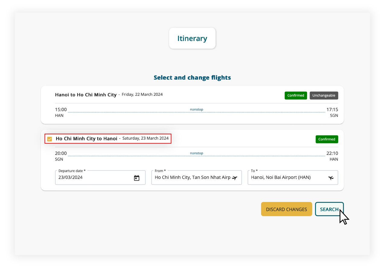 Passengers can follow the steps below to exchange tickets on the Vietnam Airlines website: