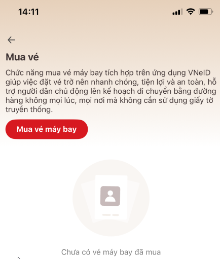 Tại màn hình thông báo mua vé thành công, hành khách nhấp chọn "Về ứng dụng VNeID" để quay lại ứng dụng VNeID và xem vé máy bay đã được lưu tại mục Dịch vụ khác - Dịch vụ hàng không - Mua vé. Tất cả vé máy bay đã mua bằng tài khoản VNeID sẽ được lưu trong tài khoản VNeID tương ứng (kể cả các trường hợp mã đặt chỗ có nhiều khách hoặc mua hộ người khác).