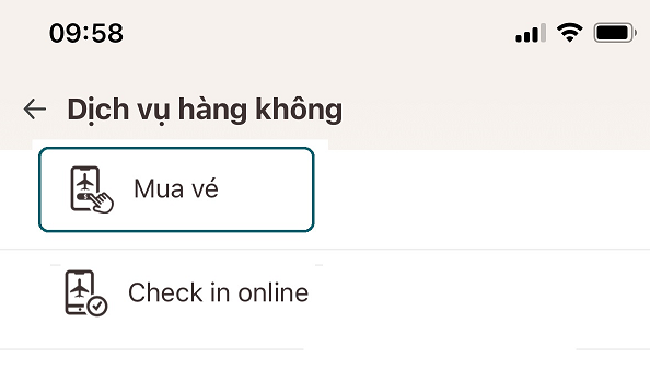 Bước 3: Chọn mục "Dịch vụ hàng không".