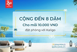 Hội viên Bông Sen Vàng được ưu đãi tích lũy tới 8 dặm thưởng cho mỗi 10.000 VND chi tiêu khi đặt phòng trực tuyến với Kaligo.