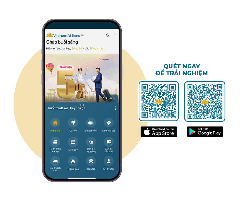 Di chuyển dễ dàng hơn với Ứng dụng di động của Vietnam Airlines - Trợ lý đa năng luôn sát cánh trên mọi nẻo đường.